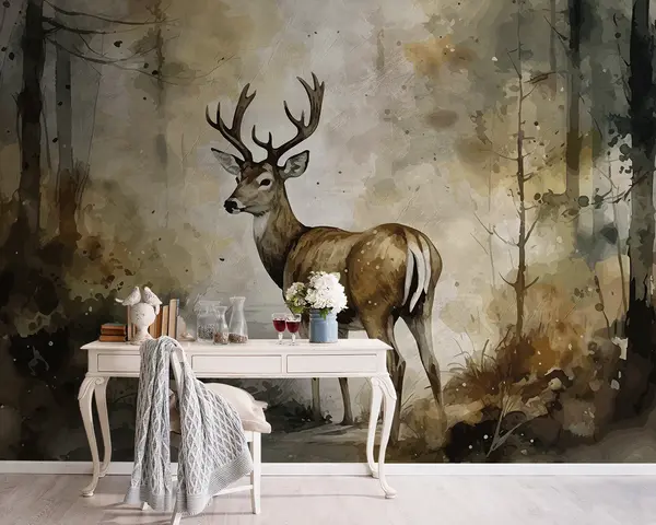 Fototapet Cerb desenat manual în pădure Nr. u95410