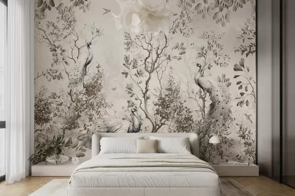 Fototapet O grădină cu păsări fragile, păuni Nr. u94850