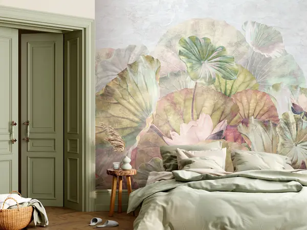 Fototapet Nuferi verzi și crini roz cu textură grunge Nr. u94272