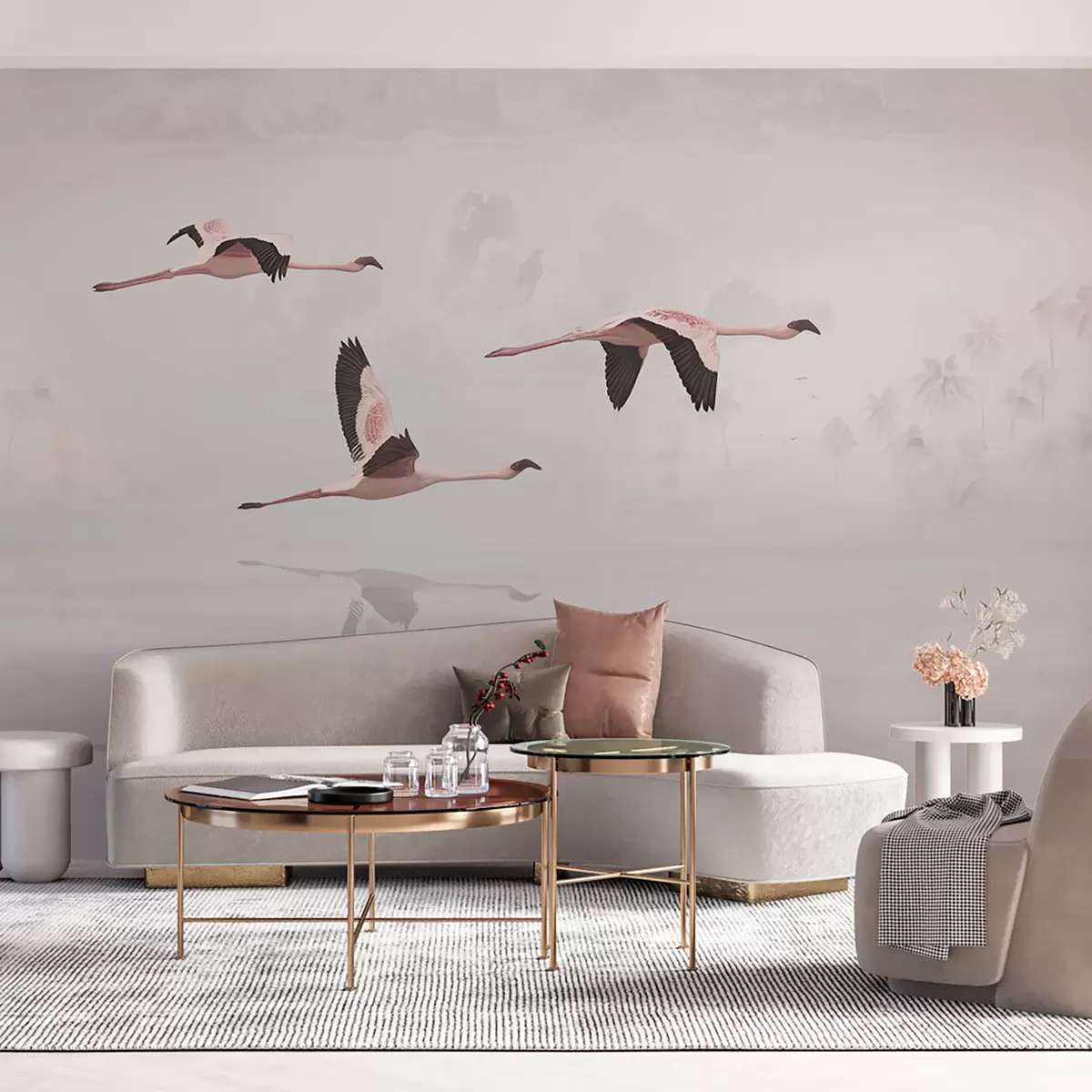 Fototapet Flamingo roz deasupra junglei tropicale plajă și mare Nr. u97457