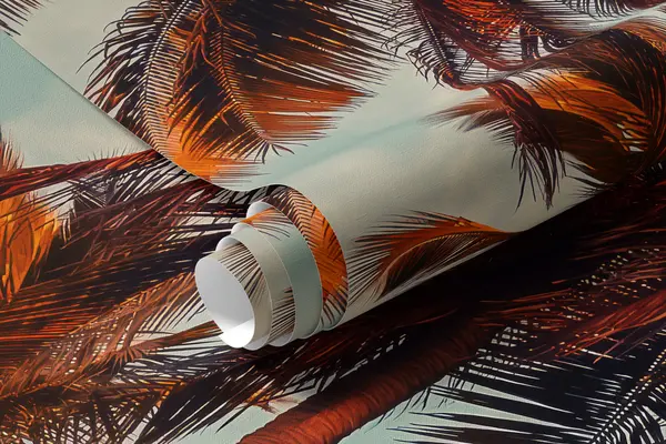 Fototapet Apus de soare pe plajă, palmieri mari Nr. u97883