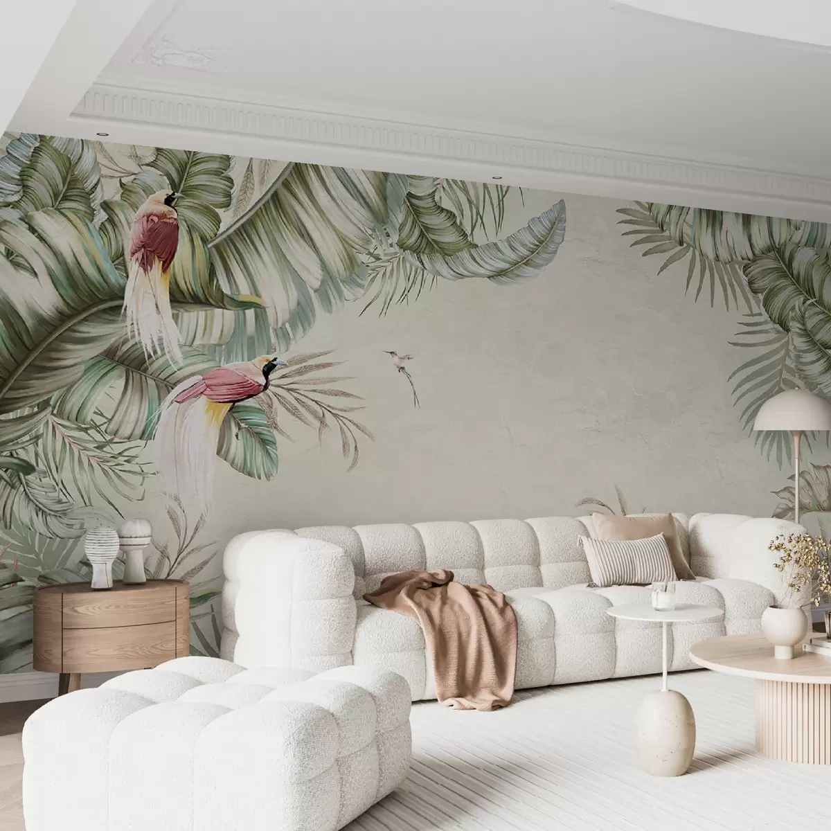 Fototapet Plante tropicale și păsări pe fundal texturat Nr. u96550