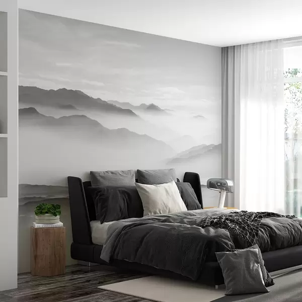 Fototapet Vedere a munților gri în ceață minimalism monocrom Nr. u96922