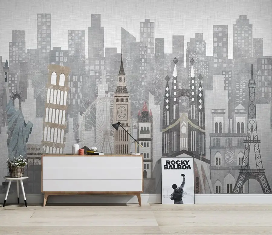 Fototapet Siluete întunecate ale atracțiilor orașelor celebre