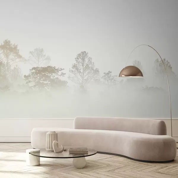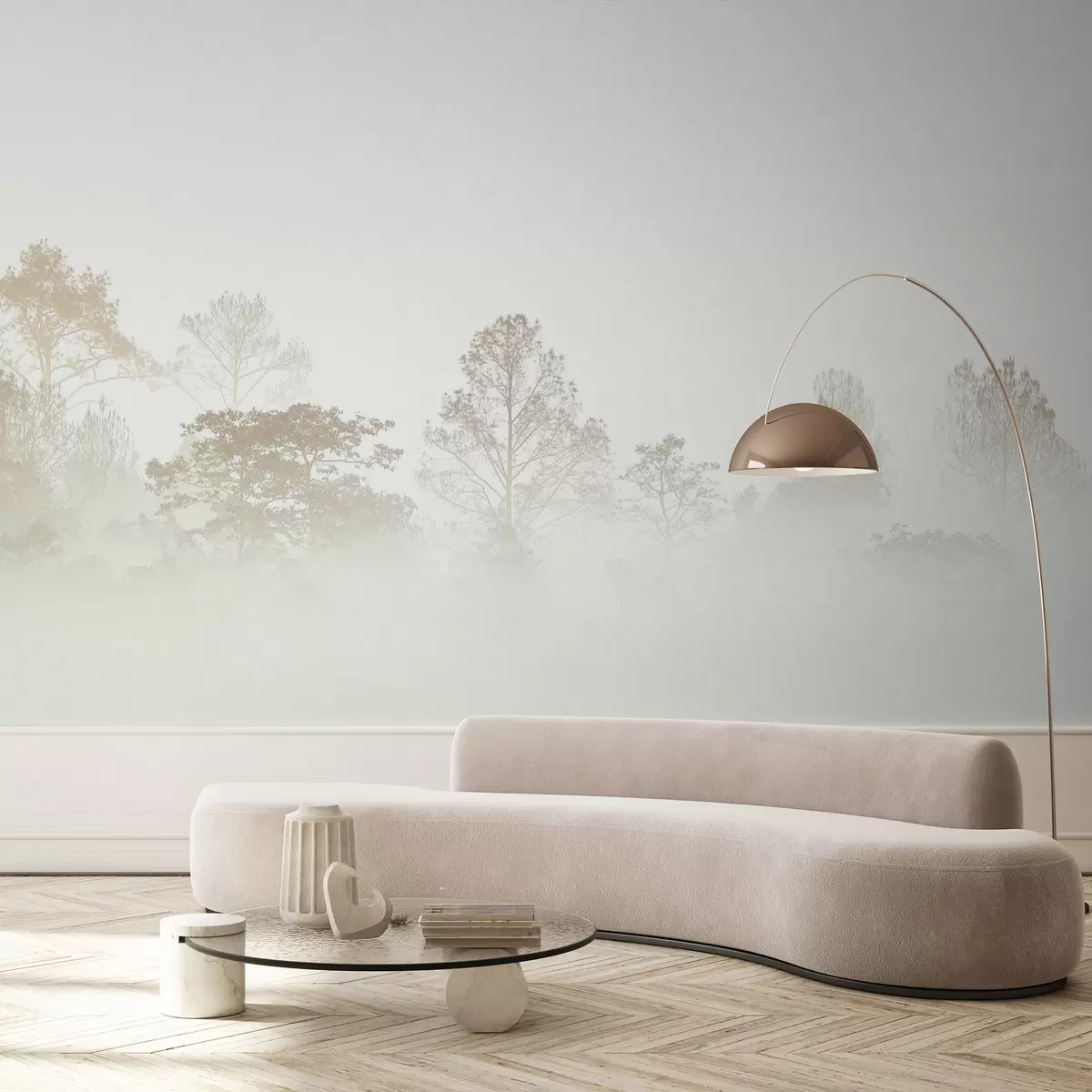 Fototapet Silueta unui crâng de copaci în ceața albă de dimineață Nr. u97405