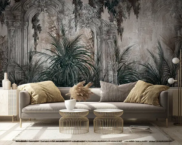 Fototapet Arhitectură antică cu frunze tropicale Nr. u95500