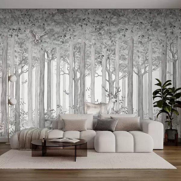 fototapet Animale de pădure cerb și bufniță în gri u97629v1