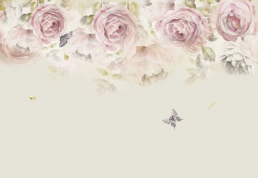 Fototapet Pene și petale aerisite în nuanțe de roz crem