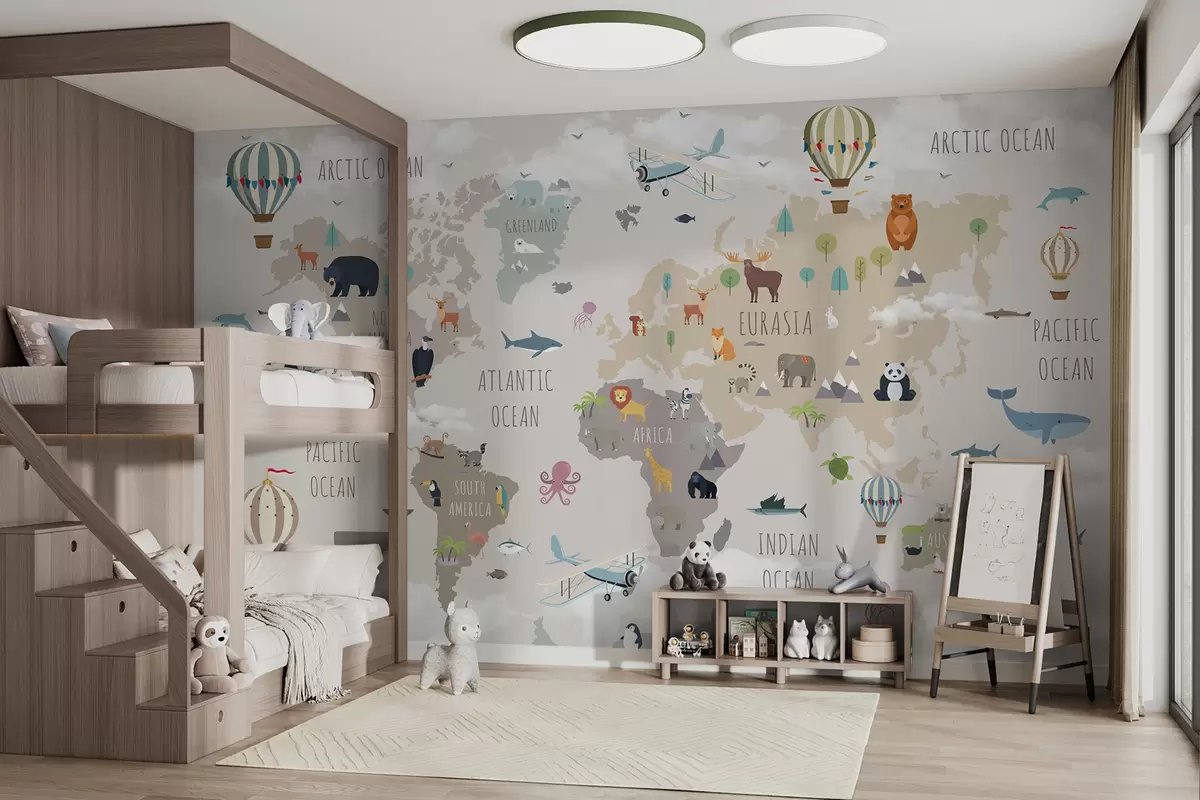 Fototapet Harta lumii cu animale și baloane Nr. u96461