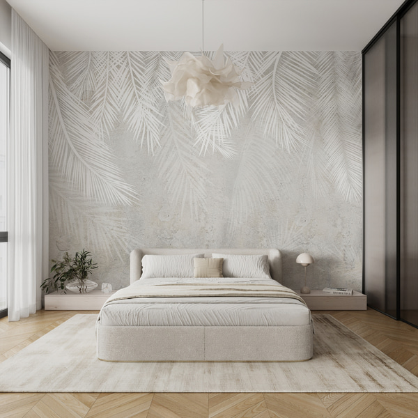 Fototapet Frunze cu curbe fine în nuanțe de bej-gri deschis