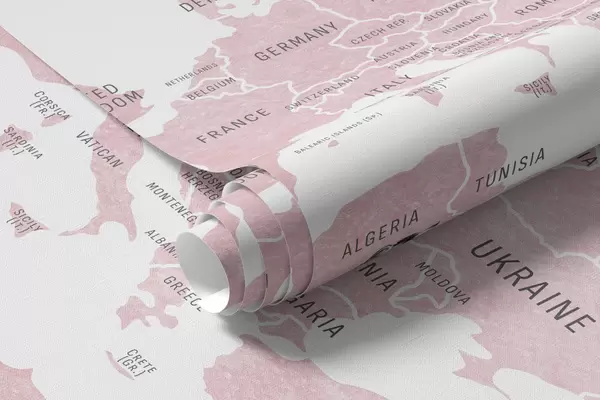 Fototapet Harta pentru copii în stil acuarelă, cu animale și baloane cu aer cald. Limba engleză. Culoare roz. Nr. c00001env3