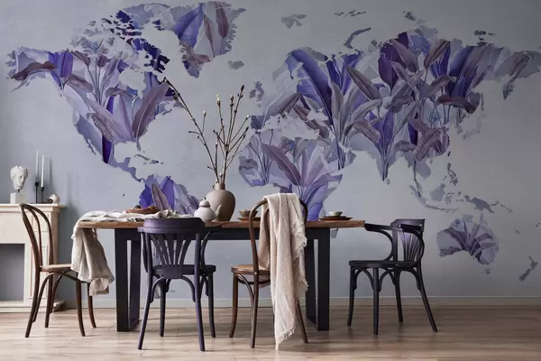 Fototapet O hartă a lumii de culoare violetă, realizată din frunze de bananier Nr. c00007v1