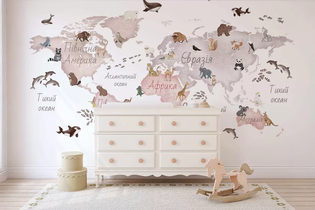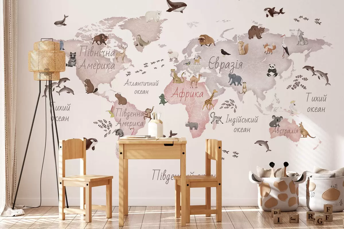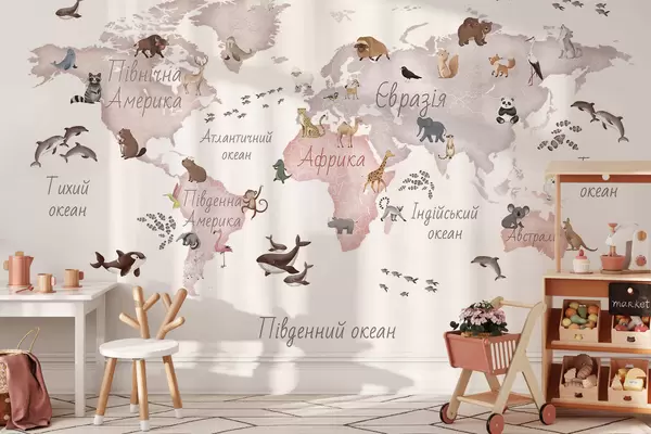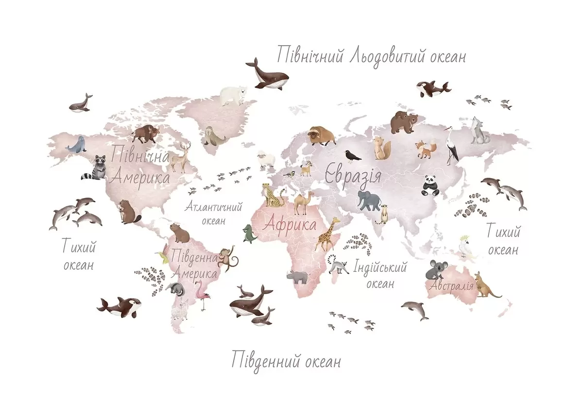 Fototapet O hartă în stil acuarelă, de culoare bej, cu animale. Indicații în limba ucraineană Nr. c00012ukv3