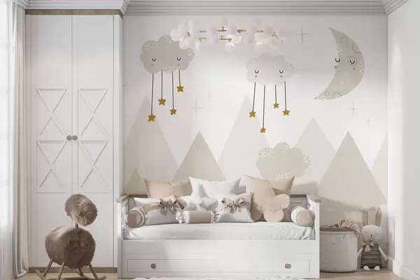 Fototapet Munți, nori și lună în stil scandinav Nr. u98920