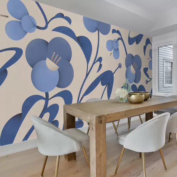 Fototapet Imprimeu botanic cu flori decorative albastre pe un fundal bej Nr. u99196v7