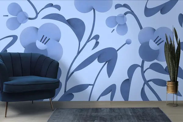 Fototapet Imprimeu botanic cu flori decorative în albastru Nr. u99196v8