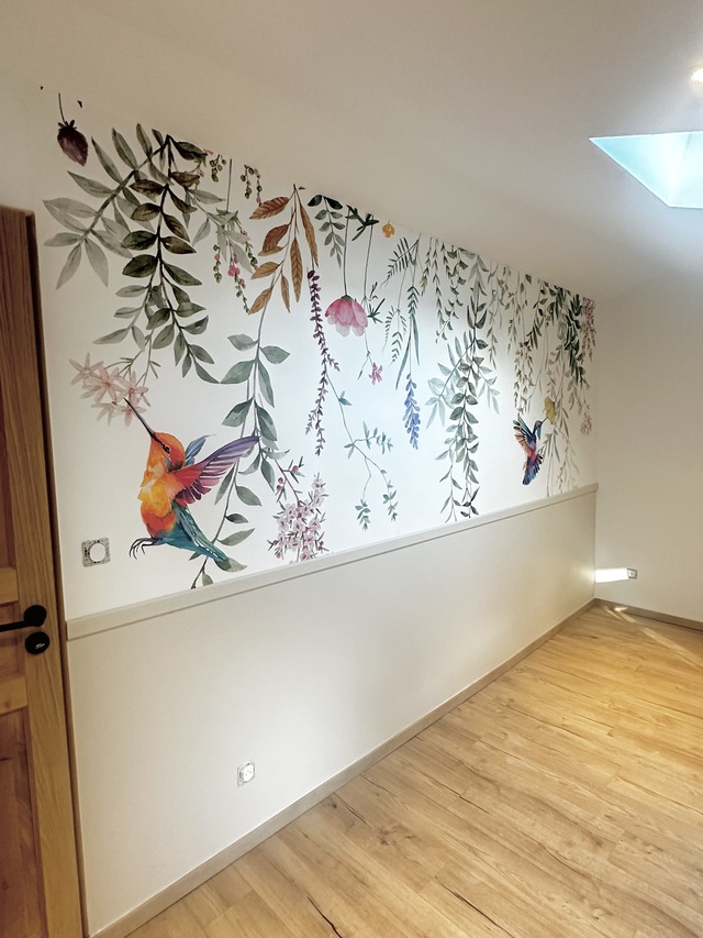 Fototapet Flori și frunze suspendate și colibri frumoase Nr. w00660