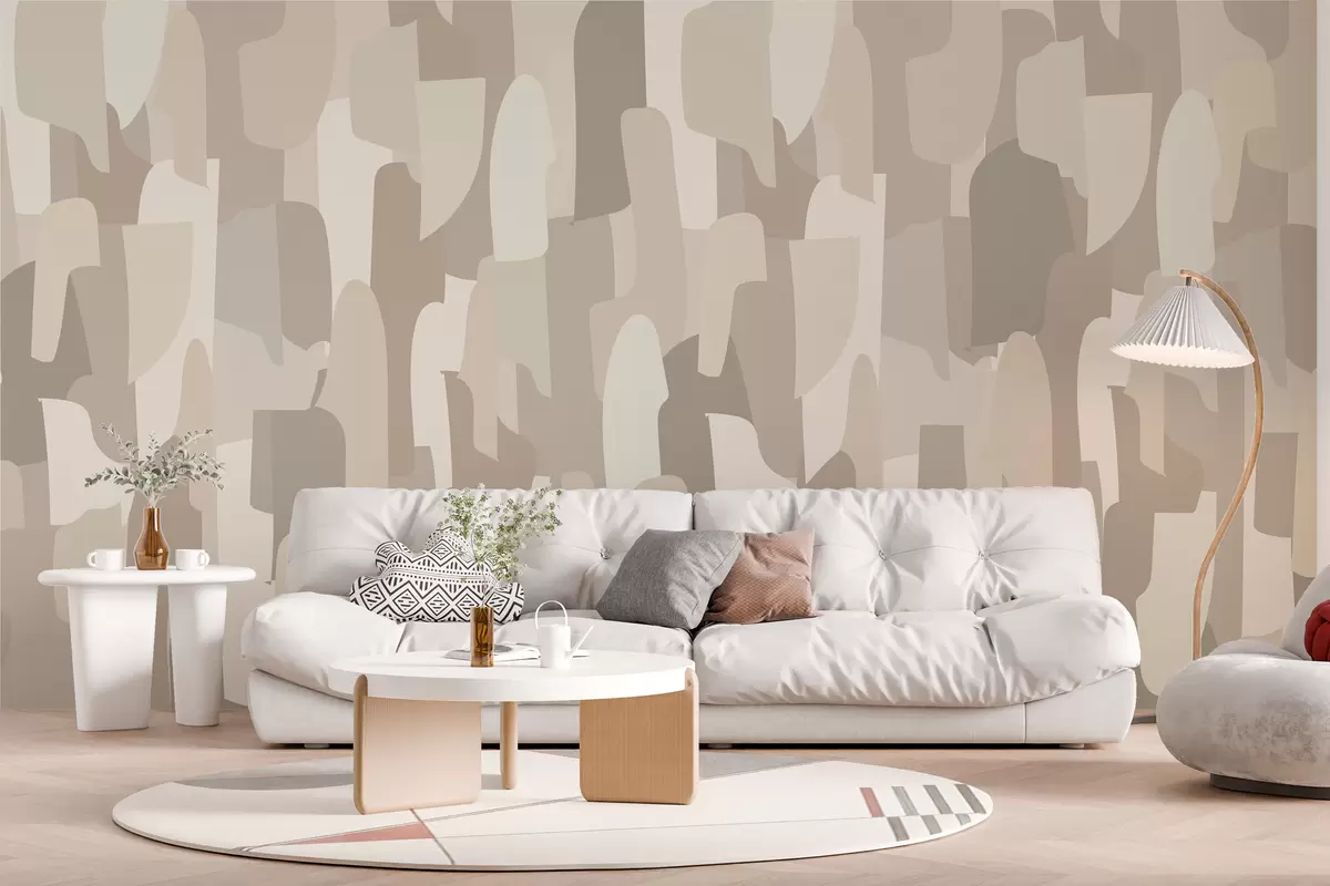 Fototapet tapet de artă modernă abstractă în nuanțe de bej imitație de piese colorate, pentru un design interior elegant Nr. w00987