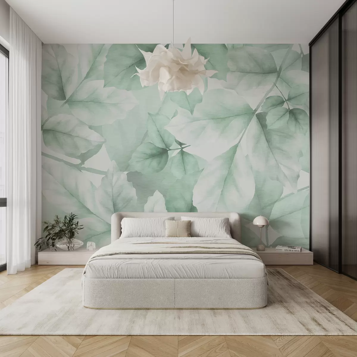 Fototapet Tapet texturat cu frunze mari în nuanțe pastelate de verde Nr. w01090v3