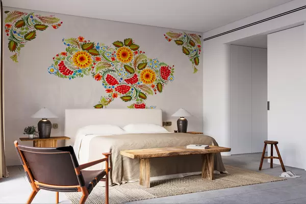 Fototapet Harta Ucrainei în stilul picturii Petrikov pe un fundal bej deschis Nr. w01149