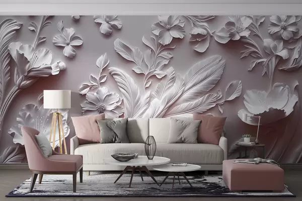 Fototapet Flori și frunze rafinate în tonuri roz Nr. w01356v1