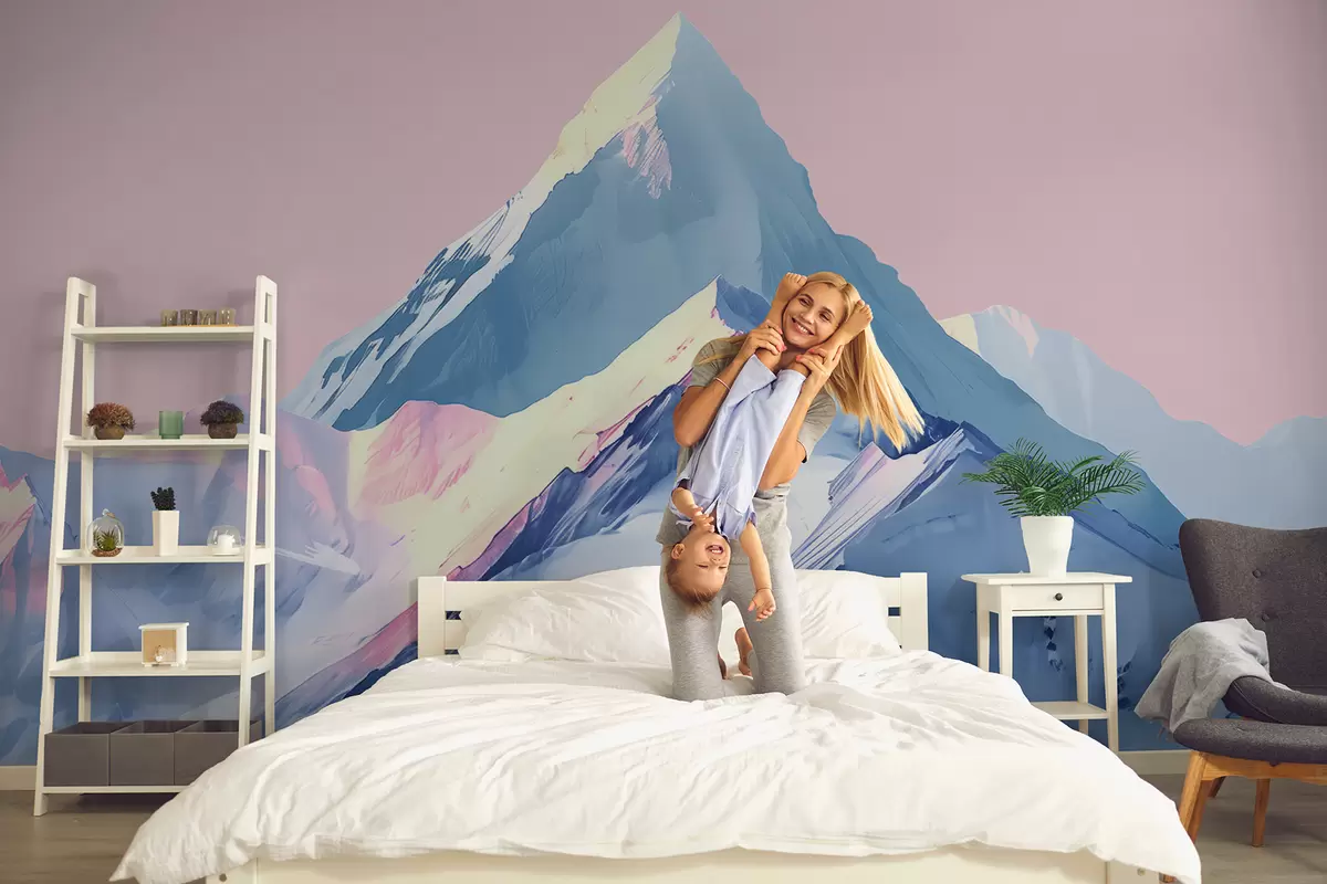 Fototapet Munți albaștri și roz în stil desenat Nr. w01497