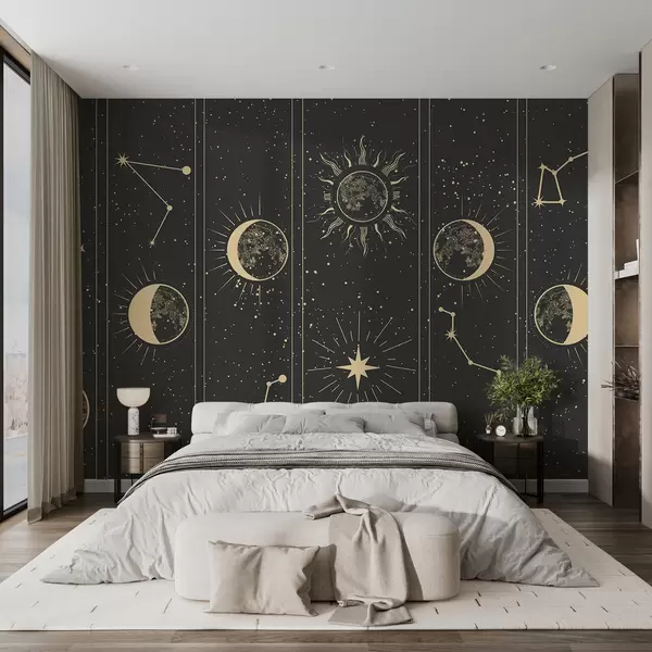 Fototapet Faza lunii, soare, fundal maro închis Nr. w01537v1