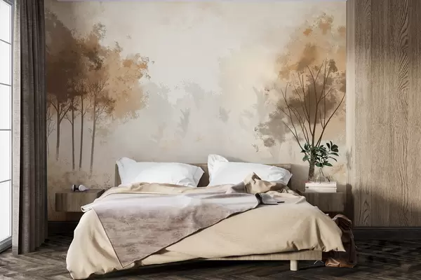 Fototapet Peisaje naturale, copaci în pădure, textură grunge, culori bej Nr. w01564