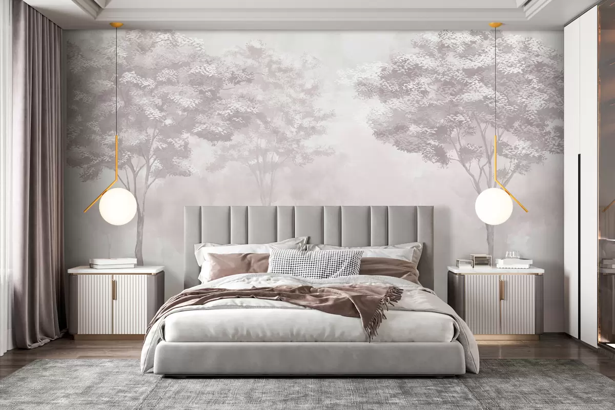 Fototapet Siluetă de pădure în ceață de culoare roz Nr. w01599v3