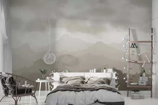 Fototapet Munți cețoși cu nori cumulus maro pe cer Nr. w01637v1