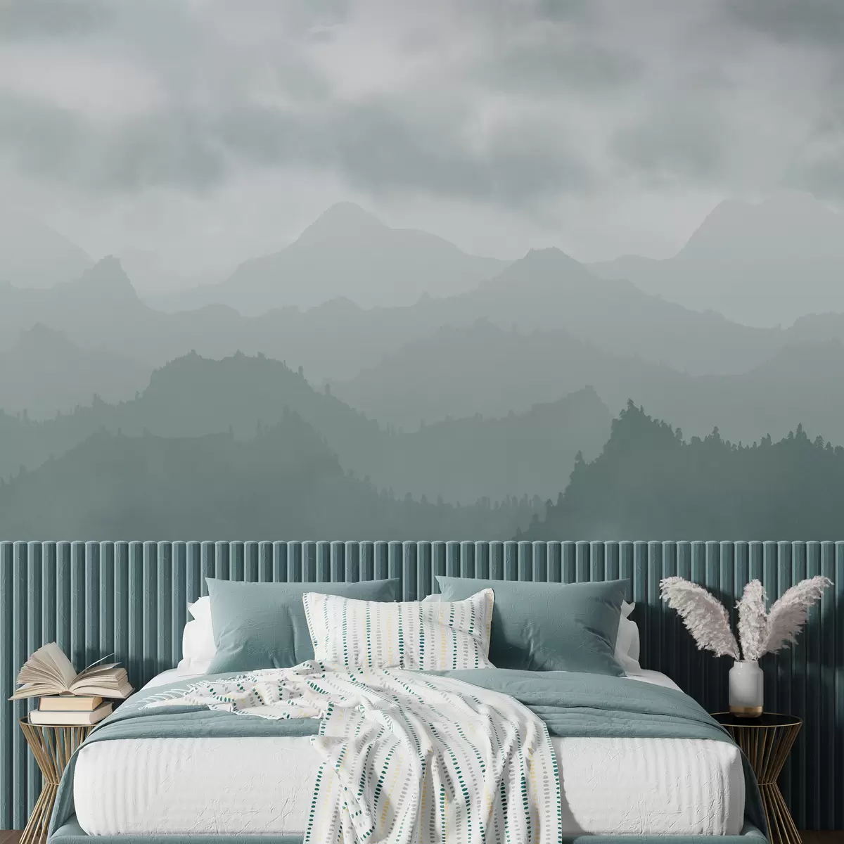 Fototapet Munți cețoși cu nori albaștri cirrus pe cer Nr. w01637v2