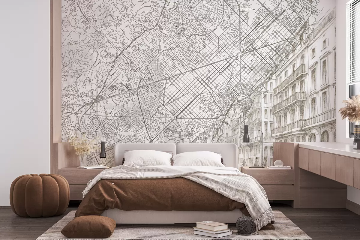 Fototapet Barcelona harta orașului, linie de desen, arhitectura, Spania, culori bej Nr. w01695