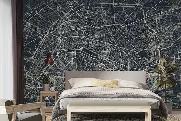 fototapet Harta orașului Paris, desen liniar, arhitectură, Franța, culori închise w01697v1