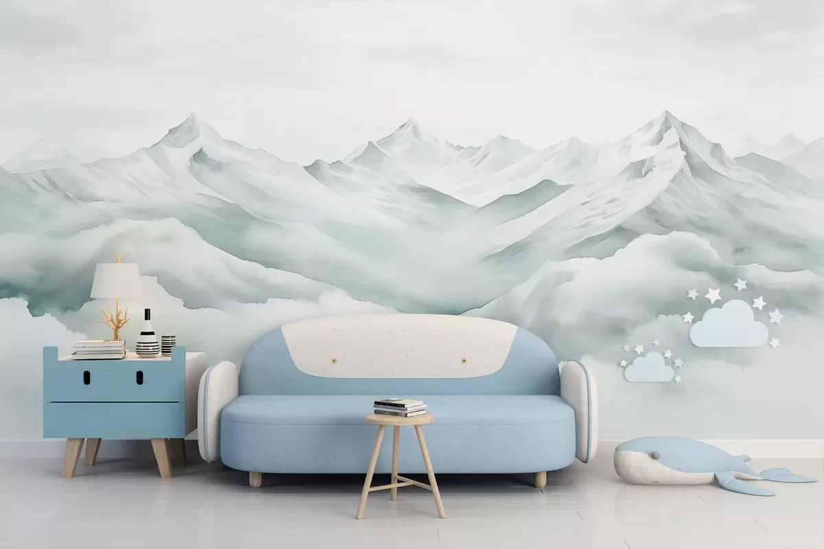 Fototapet Munți peisaj, acuarelă, culori albastre moi Nr. w01787v2