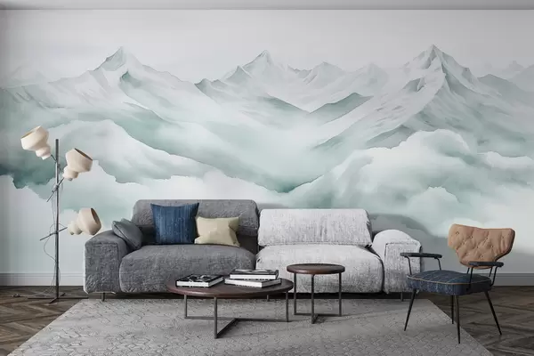 Fototapet Munți peisaj, acuarelă, culori albastre moi Nr. w01787v2