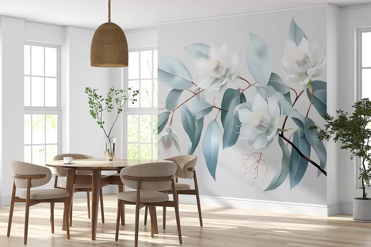 Fototapet Flori de iasomie pe ramură, acrilic, culori gri moale Nr. w01885