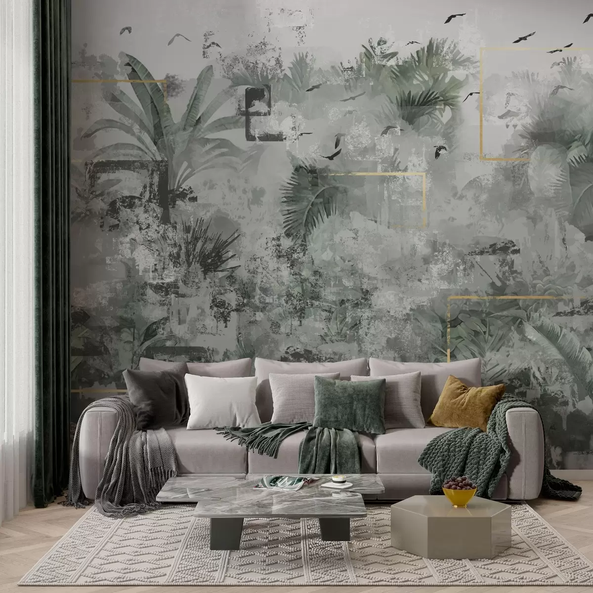 Fototapet Siluetă pădure tropicală în stil grunge Nr. w01917