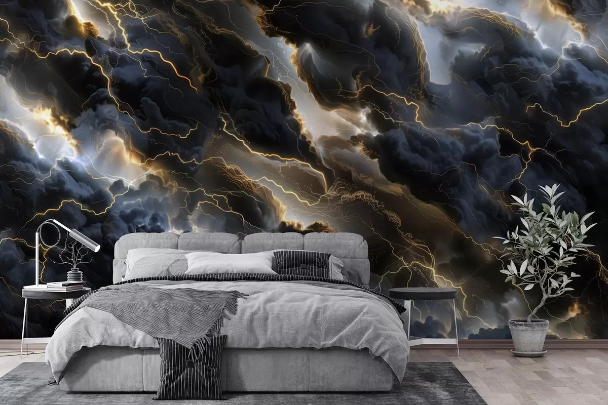 Fototapet Nori negri cu fulgere care arată ca marmura Nr. w01936