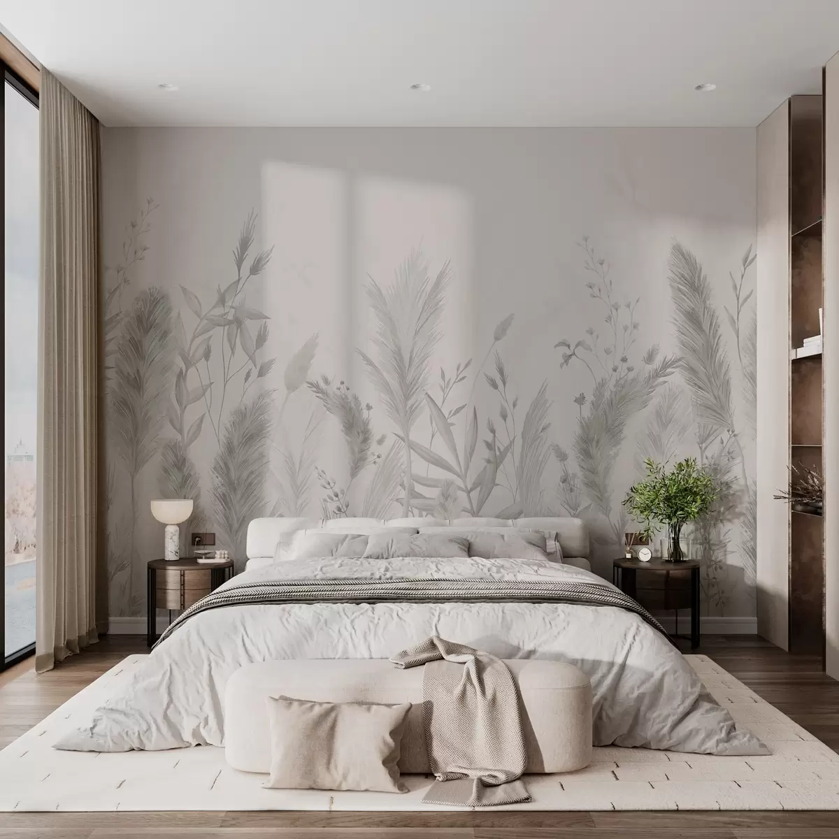 Fototapet Ierburi înalte de câmp și flori în culori neutre Nr. w02004