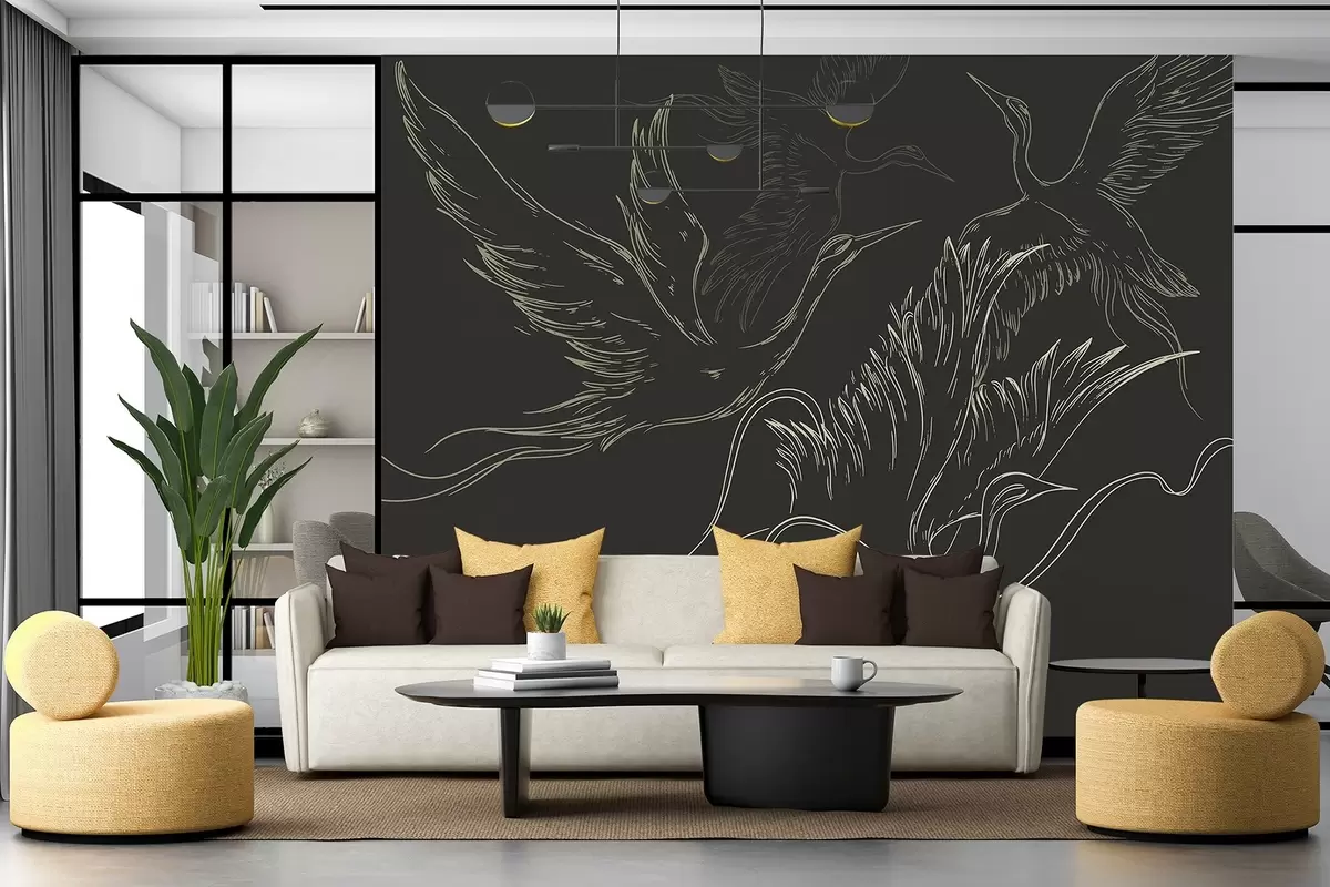 fototapet Păsări care zboară, minimalism, line art, natură, fundal întunecat w02061v3