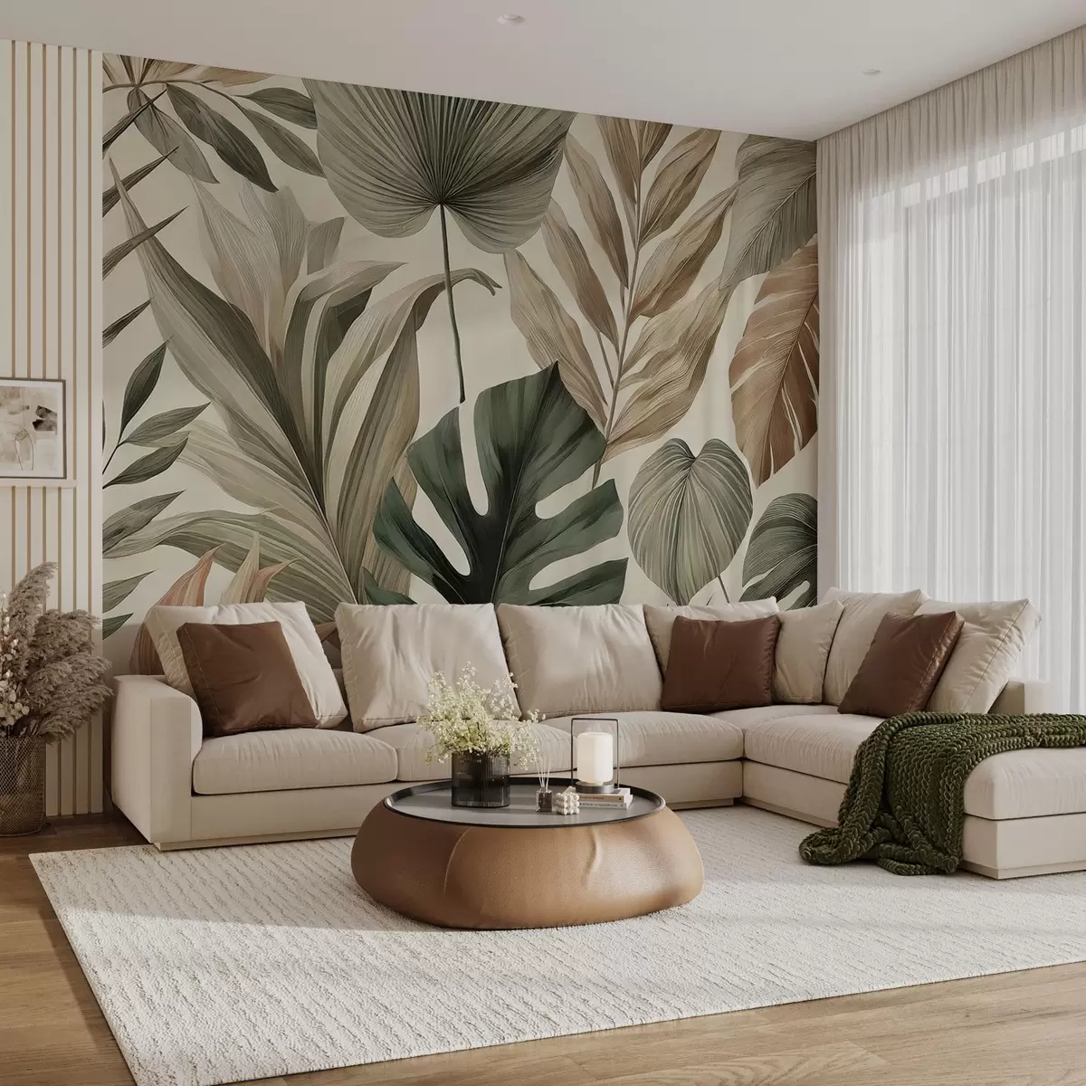 Fototapet Frunze tropicale mari în nuanțe pastelate delicate reținute Nr. w02082