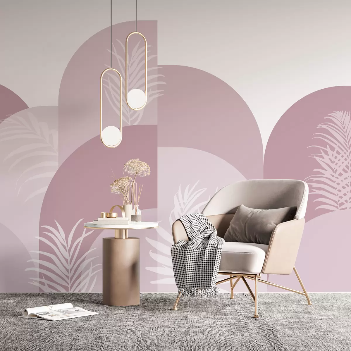 Fototapet Arce trendy cu frunze tropicale de culoare roz Nr. w02101v4
