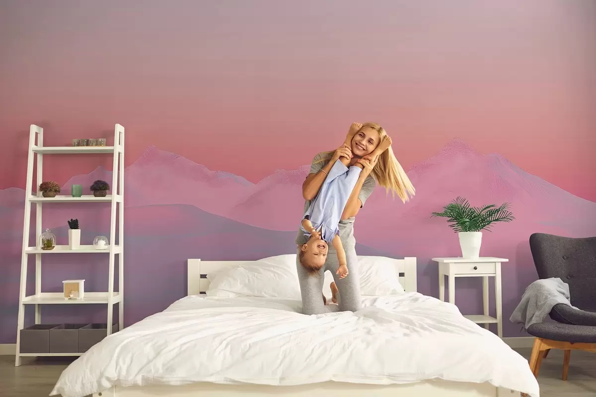 Fototapet Apus de soare de zmeură moale pe fundalul munților și al cerului Nr. w02234