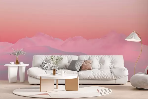 Fototapet Apus de soare de zmeură moale pe fundalul munților și al cerului Nr. w02234