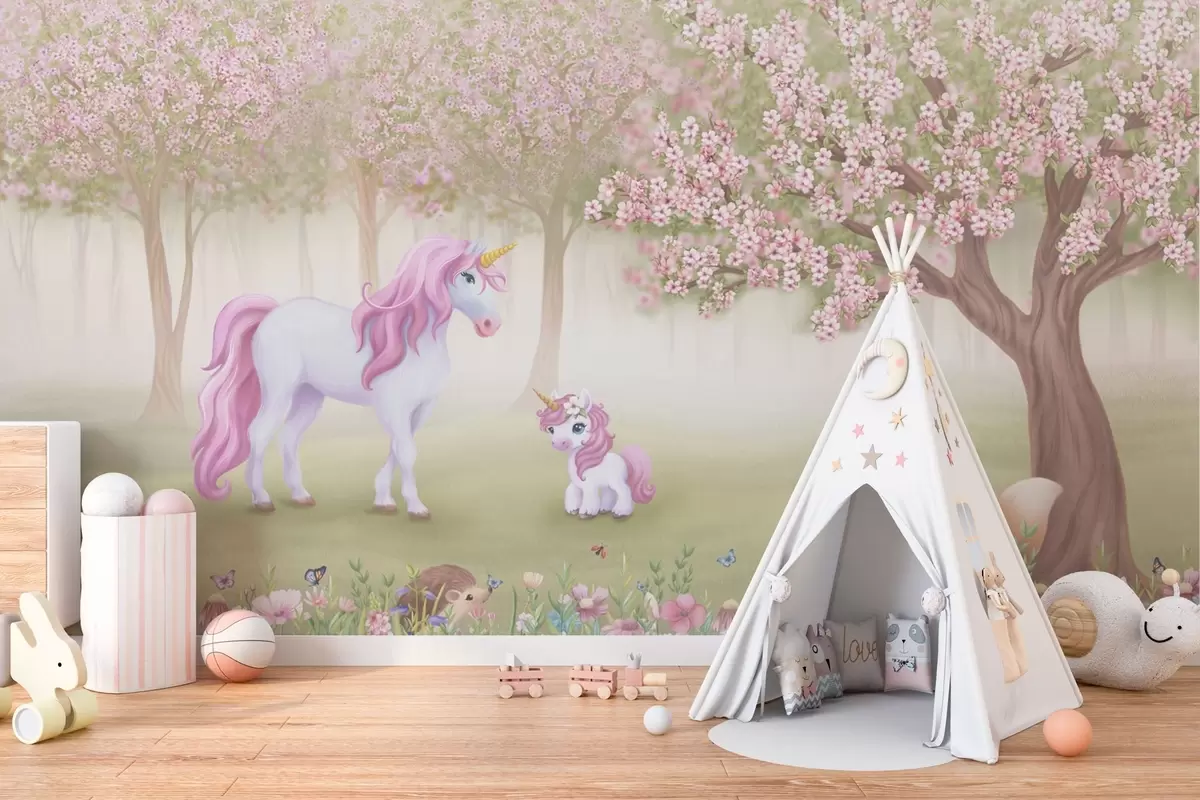 Fototapet Unicorni într-o pădure magică cu animale Nr. w02269