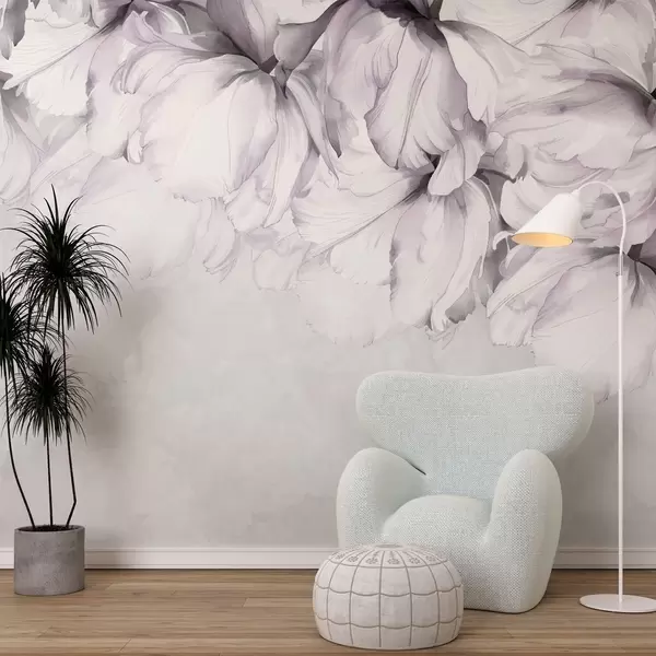 Fototapet Lumina roz flori delicate pe un fundal gri Nr. w02280
