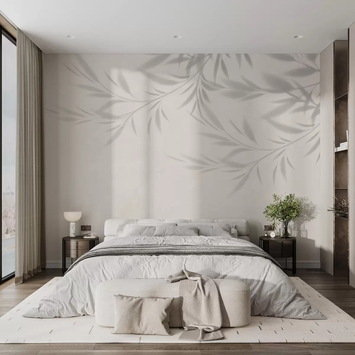 Fototapet Umbra de ramuri și frunze pe un fundal bej Nr. w02283v1