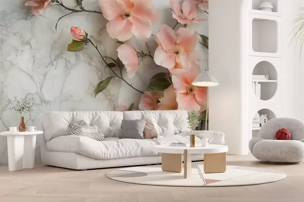 Fototapet Flori delicate pe fundal de imitație de marmură Nr. w02291