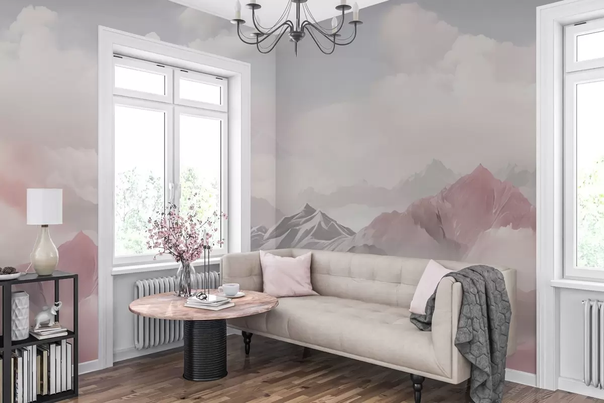 Fototapet Munți roz în ceață și nori pufoși Nr. w02296