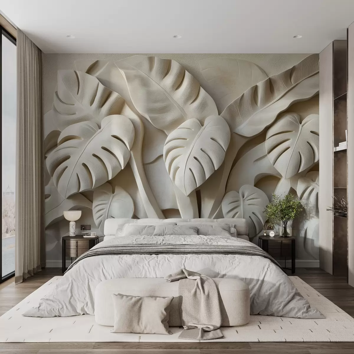 Fototapet Basorelief cu frunze mari de monstera Nr. w02312